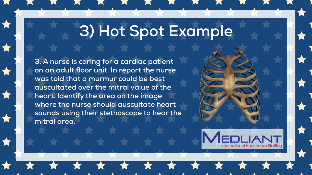 Hot Spot Questions include an image or table and are used to test your knowledge of key nursing concepts such as anatomy or physiology.