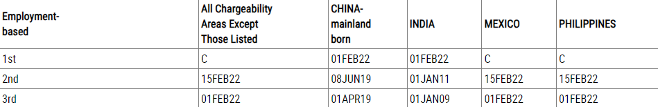 Final Action Dates For EB3 Visas (Source: travel.state.gov The US Department of State - Bureau of Consumer Affairs, July 2023)