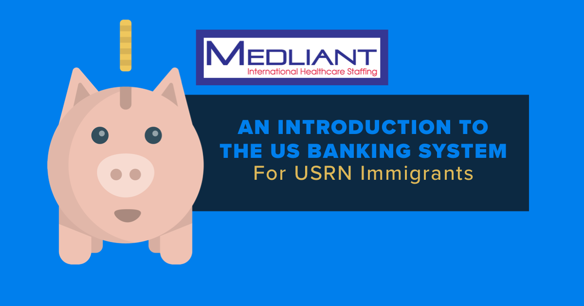 As a newly immigrated Medliant USRN, a Medliant team member will assist you in opening your first bank account. A bank account is needed to receive direct deposit payments, to transfer or wire money to another account or individual, to withdraw cash at a bank or ATM, and to set up scheduled automatic payments. Learn more about the basic bank accounts in the USA for international Registered Nurses here.